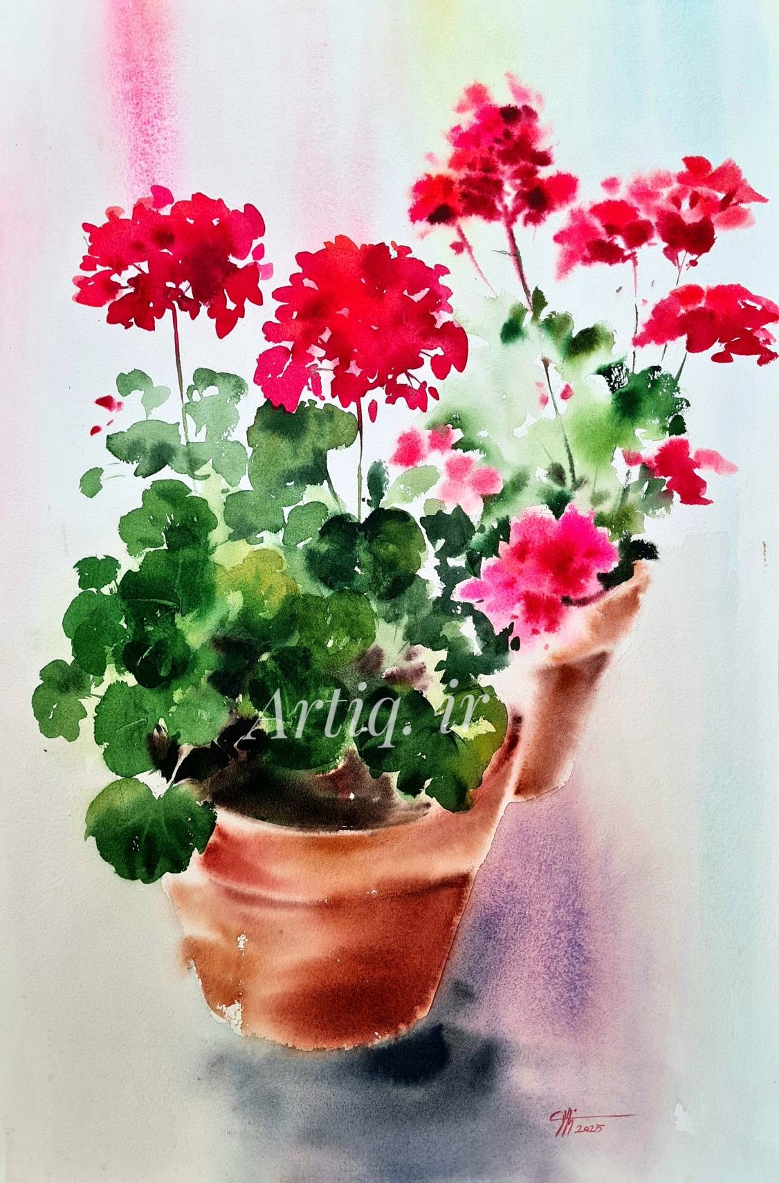 ۲_ گلها و گیاهان ، يكى ازموضوعات رایج در نقاشی آبرنگ ، گلها و گياهان هستند شفافيت ودرخشش آبرنگ به هنرمندان این امكان را می دهد كه جزئيات دقيق و لطيف گلها را به خوبی نشان دهند و حسى زنده و پويا ايجاد کنند .