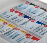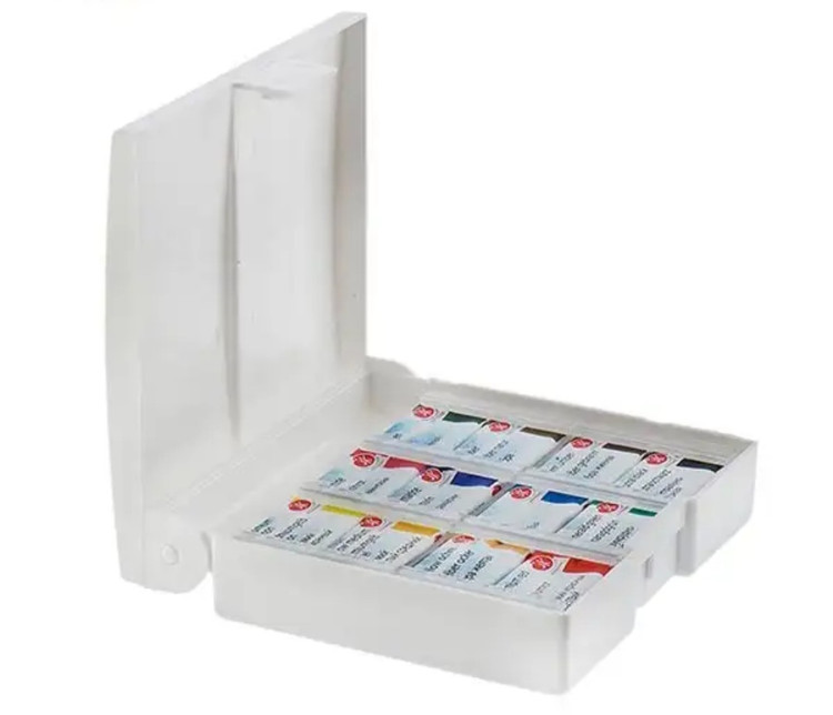 محتوى 12 عدد قرص آبرنگ 2.5 میلی لیتری با کدهای 203 لیمویی کادمیم 201 زرد کادمیم معتدل، 405 سینا خام ، 318 قرمز اسکارلت)، 319 (کارمین (511 اولترامارین 607 (بنفش)، (51) آبی 718 سبز زرد، 725 (سبز)، (418 (آمبر) 412 قهوه ای مارس 805 سیاه خنثی)