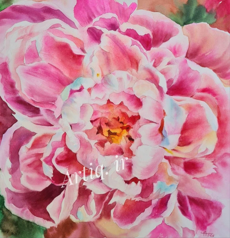 گل صورتی آبرنگ اثر استاد سوده ذاکر